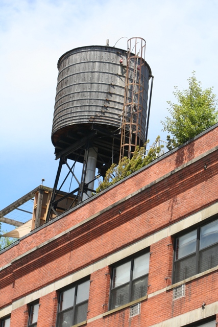 les typiques escaliers de secours obligatoires à New York depuis les terribles incendies qui ont ravagé la ville, et la présence sur les toits des anciens reservoirs à eau