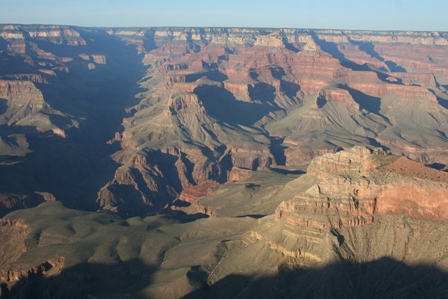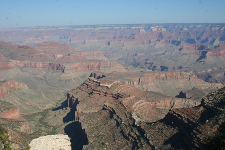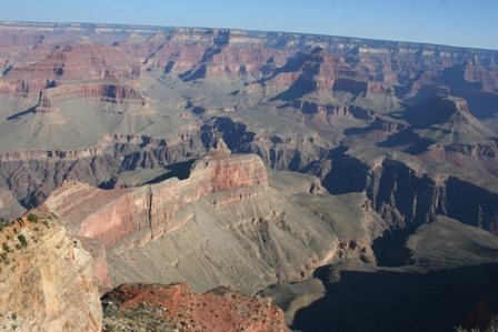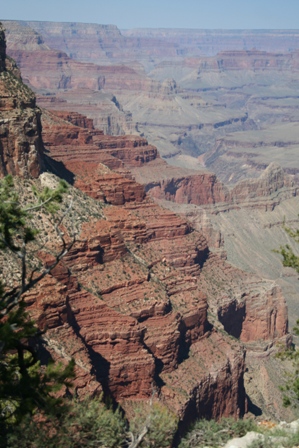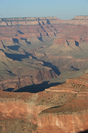 Pour faire court, il y a 1,8 milliard d'années (!), la plaine du Colorado s'est peu a peu soulevée sous la pression de la plaque continentale pour former un plateau qui s'est incliné alors que les Rocheuses apparaissaient plus à l'Est. Le fleuve colorado a alors commencé à creuser, creuser, creuser : 2500 mètres entre le bas et le haut du canyon!