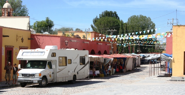 Bien requinqués, nous repartons vers Queretaro, une autre ville coloniale, et cette fois, nous sommes attendus : la française, Sophie, que l'on avait croisé à la station essence Pemex de Guanajuato, a retrouvé notre trace sur internet grâce à l'ancien nom "bulle" de la "boite à sardine". Elle a réussi à joindre les Paillots (anciens propriétaires) qui lui ont donné nos coordonnées !