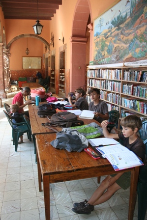 Même la bibliothèque nous accueille dans son patio typique des grandes batissent coloniales