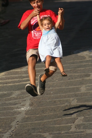 Les bivouacs sur les petites places des villes ou villages sont toujours pour les enfants des lieux de rencontres.