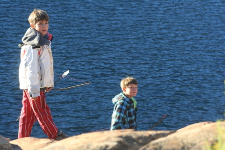 C'est à proximité d'un des multiples lacs que nous nous arrêtons. Lancelot tente sa chance avec sa toute nouvelle canne.