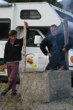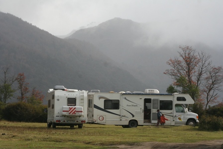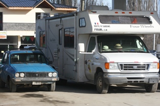 Nous restons 2 jours dans la ville tranquille de Coyhaique pour effectuer quelques réparations sur la "boite". Nous trouvons un taller mecanico qui va nous aider à solutionner notre probleme de batterie de la cellule qui ne veut pas se recharger lorsque nous roulons, et nous refixons la capucine au dessus du poste de pilotage. Depuis un moment, celle ci bouge dangereusement et nous avons l'impression qu'elle va se dessolidariser du chassis (en gros que l'escargot va perdre sa coquille !). Ce sont des moments de voyage pas drôles car nous ne faisons rien d'interessant mais incontournables. Il fait froid et il pleut !