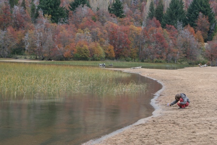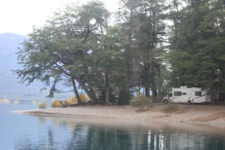 Bivouac au lac Puelo. Seul au monde ! On est hors saison.
