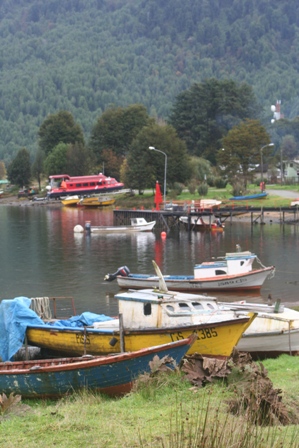Nous empruntons la fameuse Carretera Australe, la route mythique de 1100 km du sud Chili qui reste encore peu asphaltée mais qui a permi le désenclavement du sud du pays depuis 30ans. Nous déjeunons à puerto de Puyuhuapi, un petit port situé au creux d'un joli fjord