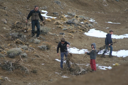 Plus personne n'emprunte ce tronçon de la Rn 40 à cette saison et pour cause ! 150 km avant El Chalten, nous nous embourbons une première fois en pleine côte. A coup de machette, nous desherbons energiquement tout ce que nous trouvons pour le placer sous les roues et parvenons à poursuivre notre chemin.