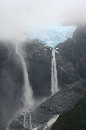 Encore une fois nous sommes absoluemment seul! Le clou du spectacle de ce parc, s'est d'aller le plus près possible du spectaculaire Ventisquero Colgante, un glacier de couleur bleue qui joue à cache'cache avec les nuages.