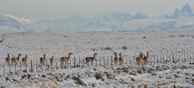 Sur la route conduisant à El Chalten, nous croisons une multitude de guanacos qui fuient en sautant les barbelés de part et d'autre de la route. Malheureusement, nombreux sont ceux qui ne parviennent pas à franchir l'obstacle et s'empalent sur les fils.