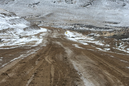 Le lendemain, nous espérons qu'avec le froid la terre sera plus dure et moins glissante mais ce n'est pas le cas. Les 100 km qui vont suivre jusqu'à la route asphaltée vont être un enfer. Nous sommes obligés de rouler à fond les ballons pour éviter l'enlisement. C'est du rallye avec un piano à queue !