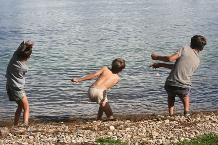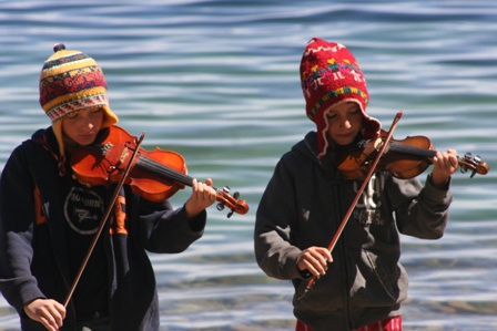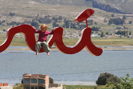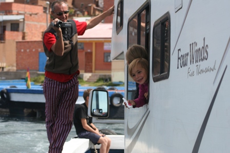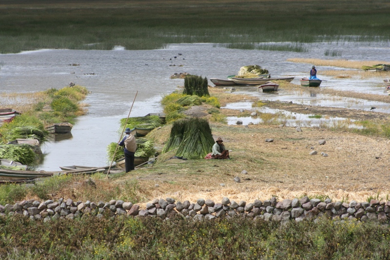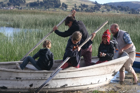 ..et nous retournons sur les bord du lac Titicaca dans le village de Huata pour rencontrer l'equipe du père Leo (encore un Italien), qui a un projet en plus de l'animation de la paroisse et du foyer d'étudiant, de construction de catamarans en bois.