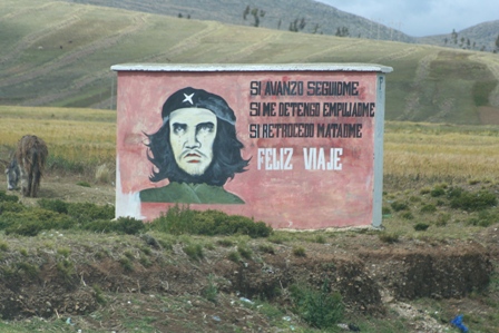 Nous sommes accueillis par le Ché dès la frontière et il ne nous quittera plus sur toute la Bolivie. Il est vrai que c'est dans ce pays que cet argentin d'origine et ses guerrieros furent executés dans la jungle bolivienne le 8 octobre 1967 sur les ordres de la CIA.