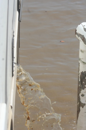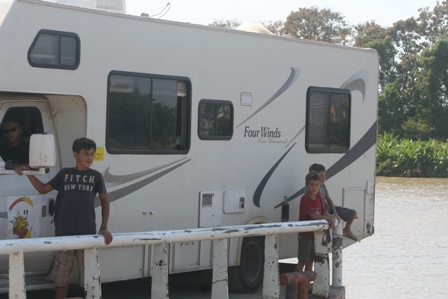 Nous devons prendre le bac pour s'y rendre et nous profitons de ce que la "boite à sardine" ait l'arrière bien disposé pour effectuer une petite vidange ! (que personne ne s'offusque, c'est bio !).