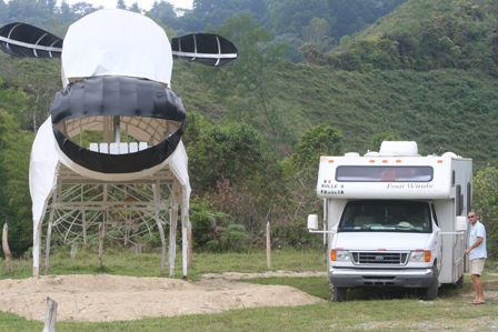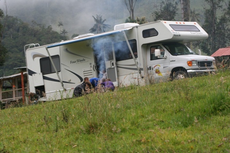Nous trouvons un lieu de bivouac sympa et malgré la pluie nous lançons le bbq (nous renoueons enfin avec une vieille habitude perdue depuis le mexique !)
