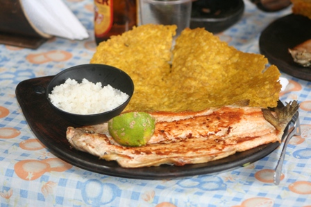 et nouvelle trucha accompagnée de l'incontournable bière locale, la Aguila.