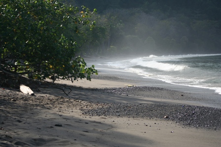 Plage "Dominical" et son sable noir, réputée pour les surfers...