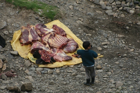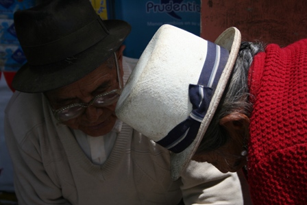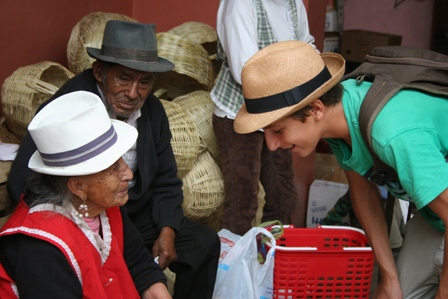 Nous profitons du marché du centre ville pour nous ravitailler. Marin qui commence maintenant à se debrouiller en espagnol, en raconte une bonne à deux autochtones !