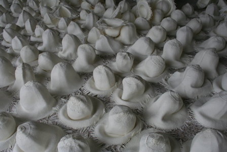 Le premier travail de tressage des Panamas se fait dans les communautés voisines avant d'être livré dans la fabrique. Il est ensuite "stoppé" (la paille est coupée et cousue), puis teint pendant 15 jours dans de l'eau oxygenée et du polyphosphate, puis rincé à l'eau claire et seché 2 à 4 jours. Le chapeau ainsi obtenu est repassé à la vapeur puis il passe avec le moule voulu à la presse (vapeur également) ce qui permet de lui donner sa forme definitive.