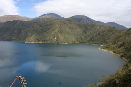 LAGO CUICOCHA (le lac des cochons d'inde !).Il est situé dans un ancien cratère de volcan à plus de 3000m. Nous enfilons nos chaussures de marche et nous partons faire un tour. L'altitude se fait vite ressentir mais la vue est magnifique.