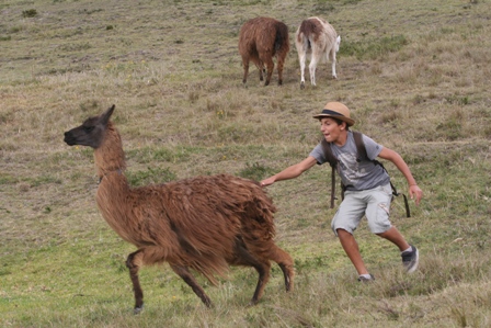Plus au sud, nous visitons les pyramides de Cochasqui, site archéologique de la période préinca. Ce n'est pas Téotihuacan (la plupart des vestiges sont recouverts), mais l'environement et la présence d'un élevage de lamas sur place rend le lieu très agréable.