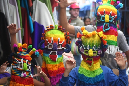Otavalo, l'un des marchés les plus colorés de l'Equateur. On se presse pour venir acheter les best of : la couverture avec des lamas, les hamacs,les ponchos à rayures, les crèches miniatures ...