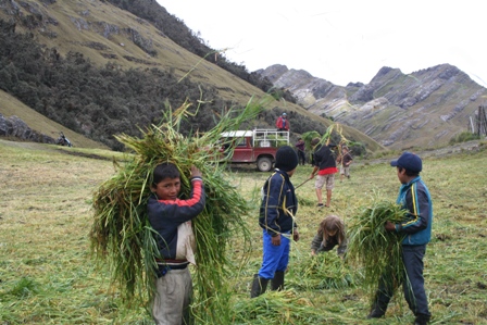 A plus de 4000m d'altitude, nous arrivons à Huachucocha, la ferme de l'opération Matto Grosso qui comprend une trentaine de vaches, presque autant de veaux et quelques cochons.