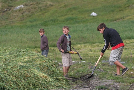 Nous décidons d'y rester, les enfants sont ravis de pouvoir jouer les farmers