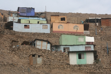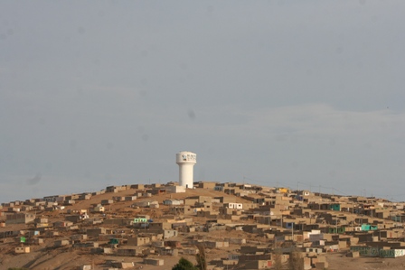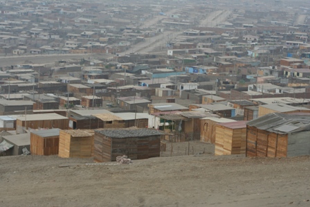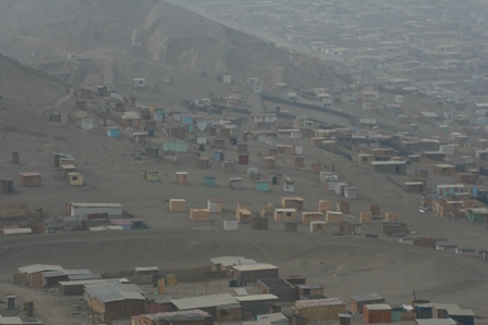 Des milliers de cabanes de bois en plein desert! Nous apprendrons plus tard que les habitants de ces maison s'appellent les invadores. Le gouvernement a permi a tous les sans toit de venir s'annexer un bout de desert. Chaque année, des migrants de la sierra viennent tenter leur chance à Lima et se construisent une petite cabane.
