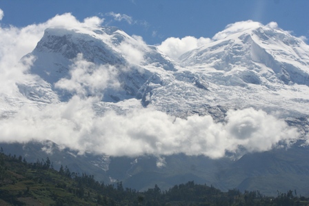 Nous apercevons les magnifiques montagnes enneigées faisant parties du parc de Huascaran dont l'un des sommets a été choisi par la Paramount pour son logo (le sommet couronné d'étoiles au début des films).