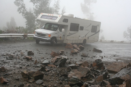 Les dernières pluies, comme souvent en cette saison, provoquent de gigantesques éboulis (derumbes). Nous slalomons entre les blocs de pierres les oreilles à l'affut du moindre bruit suspect !