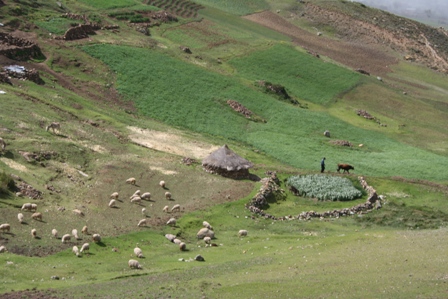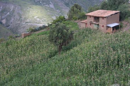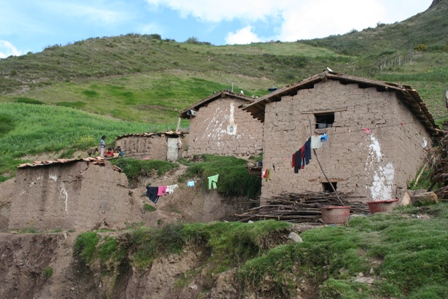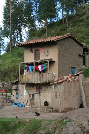 La piste est maintenant en terre pas trop détrempée et nous admirons les superbes paysages de la sierra. Toutes les maisons sont construites en adobe (terre sechée et paille) avec une toiture de tuiles. C'est ecolo et plutôt joli.