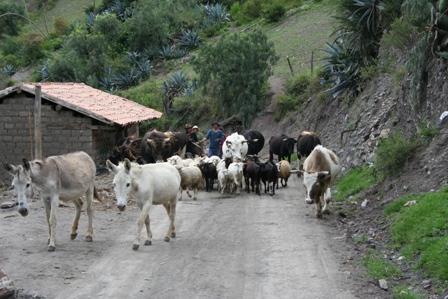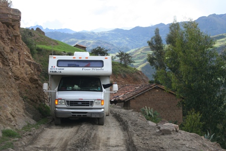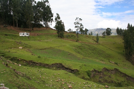 Le lendemain, beau temps ! Nous reprenons la piste et comprenons que nous sommes dans des anciens (?) fiefs du Sentier Lumineux (Guzman étant leur chef).