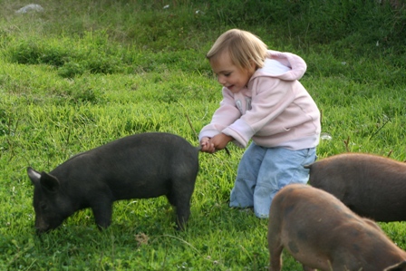 Bertille sympatise tout de suite avec une bande de cochons de lait sous l'oeil indifférent des villageois oisifs.