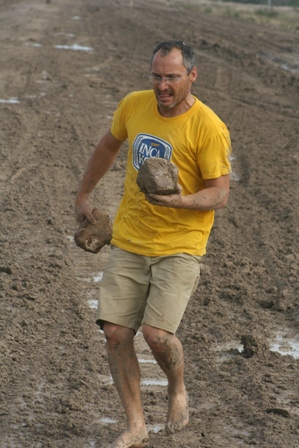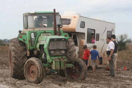 C'est sûr, à cheval, c'est plus simple ! Bon après 3 heures de lutte dans la boue, on nous envoie enfin du secours.