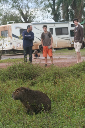et l'on y rencontre également une foule de capibaras (cabiais) ou "seigneur des herbes" en Guaranis. C'est une sorte de cochon d'Inde géant, le plus gros rongeur du monde (jusqu'a 65kg !).