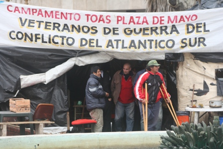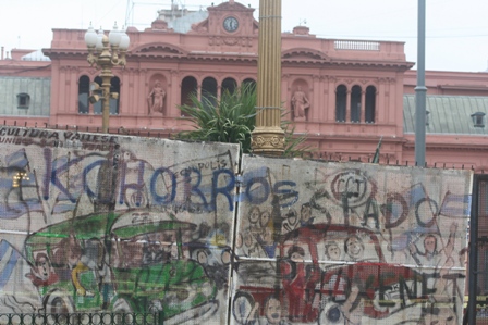 Nous nous rendons à la Plaza de Mayo, le coeur de Buenos Aires. Ce serait le premier endroit où se sont installés les Espagnols et c'est d'ici que partent les grands rassemblements qui ont marqué l'histoire de la ville. Pendant 25 ans, tous les jeudi, les mères des disparus durant les periodes troubles de l'Argentine (sous la junte militaire) défilèrent en tournant en rond. Aujourd'hui, la plaza de Mayo est toujours occupée depuis la fin de la guerre des Malouines par des vétérans qui réclament la reconnaissance de leurs droits.