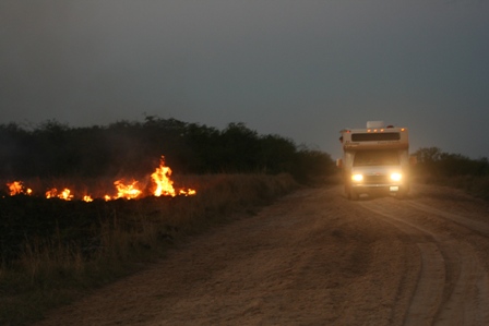... et nous bifurquons par une piste vers la reserve nationale d'Ibera, connue pour ses multiples ecosystemes abritant de nombreuses espèces animales.