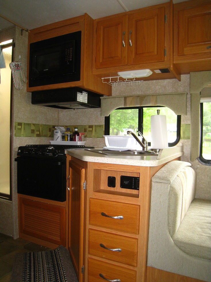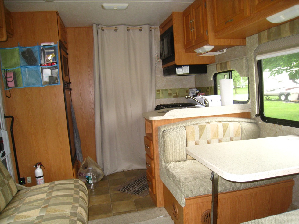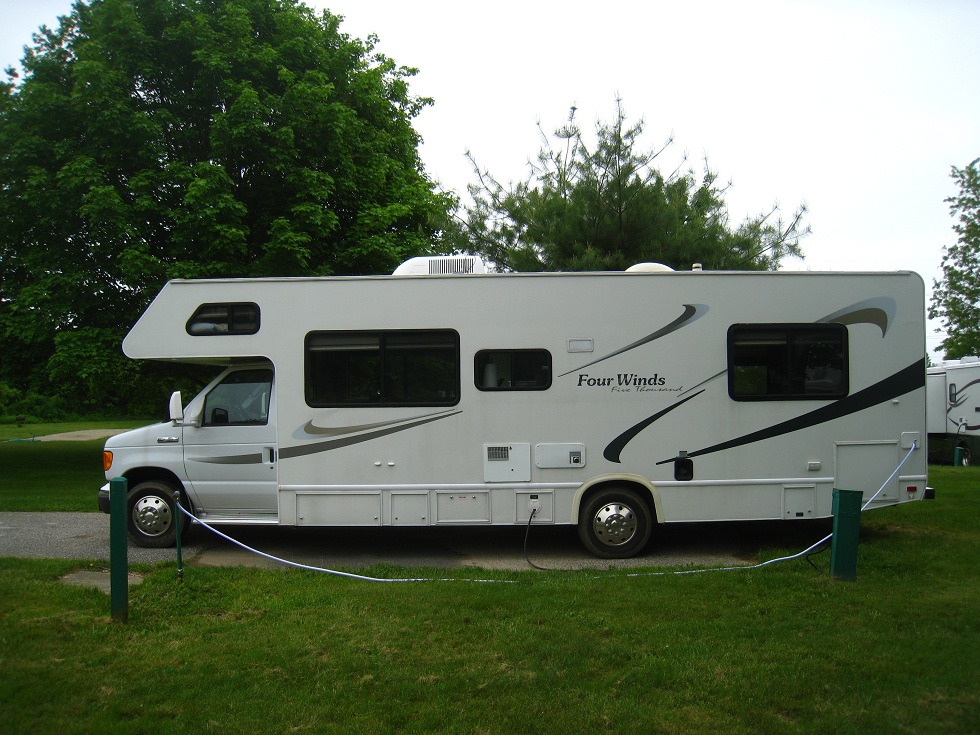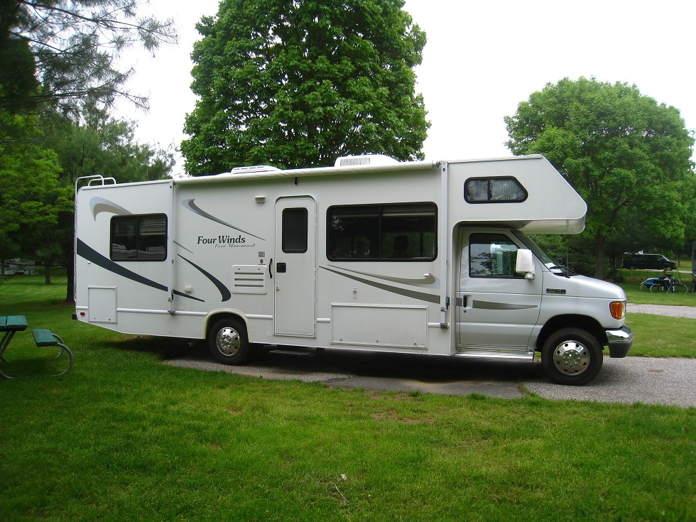 La "boite à sardines" est un Four Winds 5000 de 2006, une "bête" de près de 9m de long (29 pieds) pour un poids de 6T. Elle est équipée d'un moteur essence ford V10 à propulsion : un monstre !
