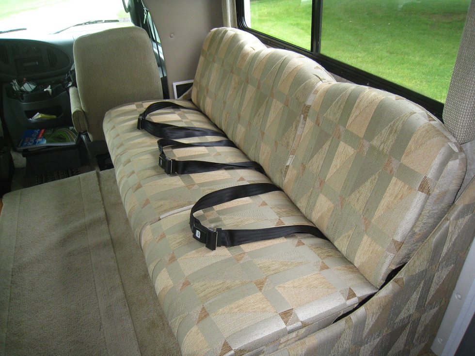 • Le camping-car est propulsé par un Ford V10 qui aura à peu près 70000 miles à la fin de notre périple (ce qui n'est rien pour ce genre de moteur!). La consommation se situe entre 24 et 26 litres pour 100 km. • Boite automatique • Propulsion, roues arrières jumelées • Climatisation moteur, régulateur de vitesse, vitres électriques, lecteur CD • Entretien fait régulièrement, révisions fréquentes chez Ford • Nombreux équipements véhicule laissés avec (câble de traction, câbles batterie, cales, tuyaux,...) • Atlas routiers, cartes • GPS Magellan avec carte USA et Canada • Nombreux outils et accessoires
