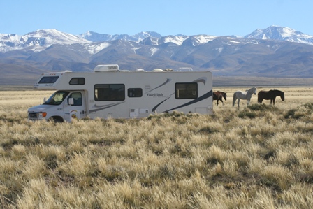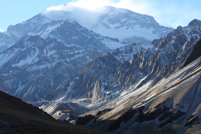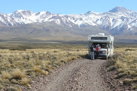 Après une courte visite mais neanmoins fructueuse de Mendoza (nous avons rencontré un couple argentin qui veut acheter la "boite"), nous filons vers l'Aconcagua, le sommet qui domine les Amériques avec près de 7000m d'altitude.