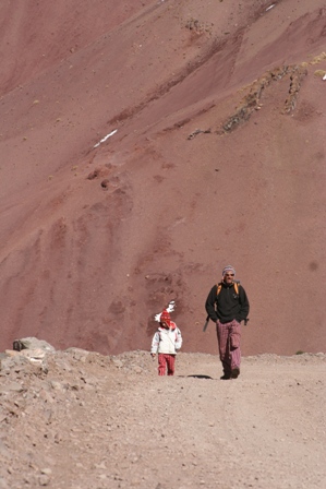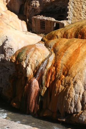 En chemin, nous faisons une halte à Puente del Inca, une arche naturelle recouverte de concrétions calcaires jaunâtres. Ici coulent des eaux thermales qui ont connu leurs heures de gloire dans les années 20 : ligne de chemin de fer et hôtel chic furent construits mais une avalanche en 1965 à tout emporté.