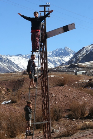 Nous bivouaquons bien caché derrrière une maisonnette près du Puente del Inca. La température est très basse. Heureusement, Mister "Del puente" est arrivé les bras chargés de saucissons et de Nutella, les 2 mamelles des sardines !