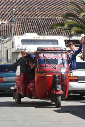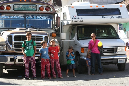 Nous bivouacons dans une rue de Santa crux del Quiche et Rita, une voisine que nous ne connaissons pas viendra au reveil frapper à notre porte avec un delicieux chocolat chaud !