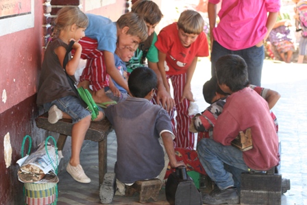 Rencontre de Marie Sol et Lucia, 2 gamines tres futées parlant quelques mots de français et que nous inviterons à déjeuner
