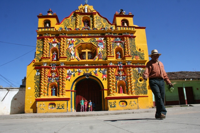 Déjeuner dans une guinguette à Totonicapan avant de rejoindre San Andres Xechul et sa fameuse église jaune que nous avions tant aimée il y a 13 ans.