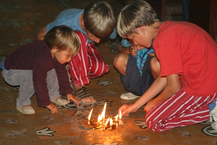 Séance de cirage de chaussures pour Bertille (de blanches, elles deviendront marrons foncées !)