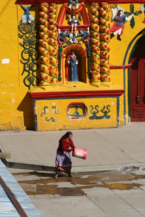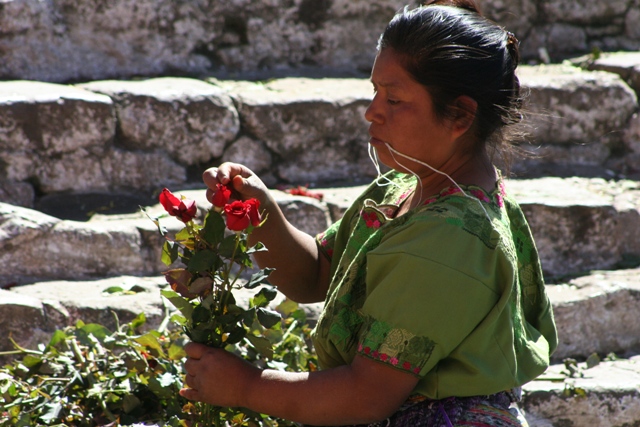 Sur les marches de Santo Tomas, église batie sur un ancien temple Maya dans laquelle rites catholiques et coutumes Maya sont imbriqués, drôle de mélange !