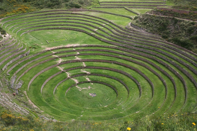 Le site Inca de Moray serait un site agricole experimental. Dans cet amphithéatre, les Incas simulaient toute une serie de micro-climats (plus on se rapproche du centre, plus il fait chaud).