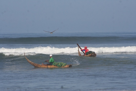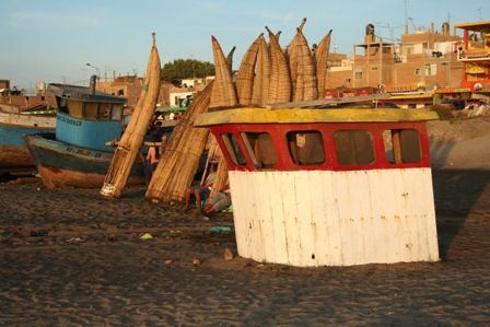 La pêche traditionnelle s'effectue avec les caballitos de totora, des barques en roseau tressé (bon on a vu aussi un peu de polystyrène !)
