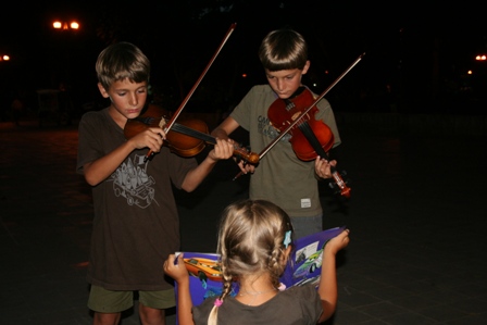 Après avoir parcouru la ville en tous sens, nous passons la nuit sur le Zocalo. Les garçons organisent pour se faire 3 sous un concert d'alto, et Marin se lance dans l'entreprise de fabrication de porte monnaie 100% recylclés.