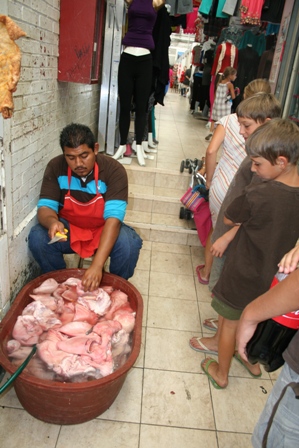 Arrivée à Queretaro, nous garons la "boite à sardines"devant la maison de la famille Perez-Duarte qui nous attend avec un délicieux diner Mexicain : aperitif à la Tequila et cochinita Pibil, Jicama, Chicharron avec sa sauce de Pico Gallo, glace à la Guanabana et mousse de Cilantro (mousse au coriandre), le tout sur un déliceux vin rouge !